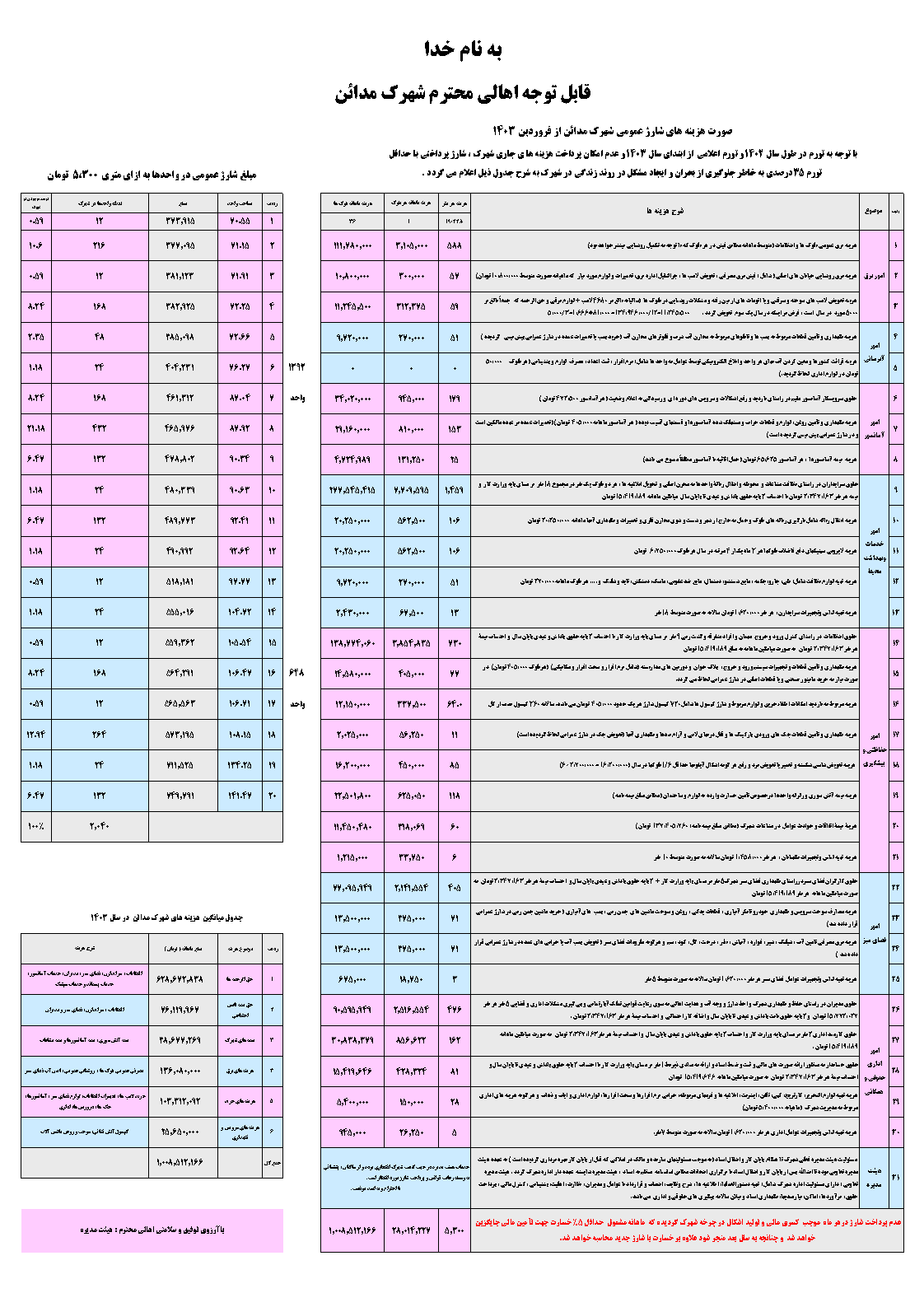 مشترک محترم واحد {{bill.Unit_No}} :به علت داشتن شارژ عمرانی ابتدا می بایست هزینه آن را پرداخت نمایید .